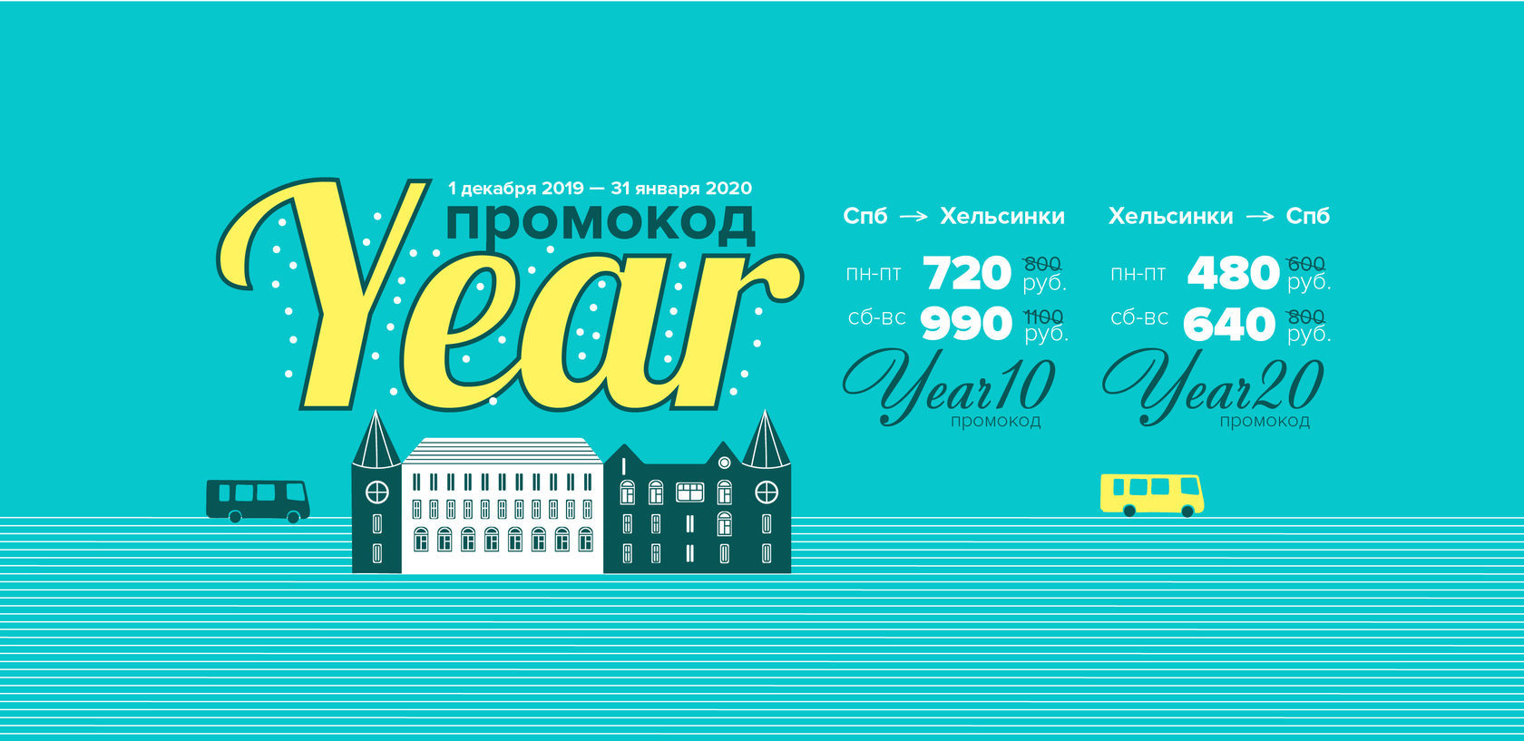 Не успели все отойти от нашей акции в закрепе? Так вот вам ещё одна! Экономим 10% на автобус до Хельсинки с промокодом YEAR10 и целых 20% до Санкт-Петербурга с промокодом YEAR20!